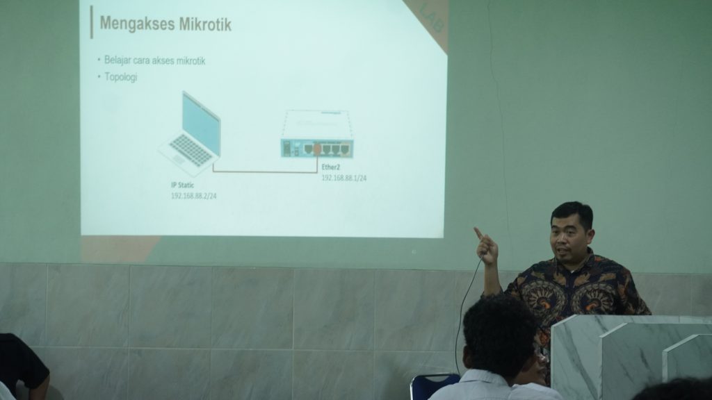 Pada tanggal 06 Januari 2026 telah dilaksanakan kegiatan PkM mengenai Pelatihan MikroTik di MA Annida Al Islamy. Pelatihan ini bertujuan untuk melatih siswa/i MA terkait dengan pengenalan jaringan, sejarah Mikrotik, pengenal perangkat Mikrotik, konfigurasi Router Mikrotik, dan praktek penggunaan router Mikrotik. Pelatihan ini dibimbing langsung oleh Bapak Abdurrasyid, S.Kom., MMSI selaku Trainer dan ketua pelaksana kegiatan PkM ini, dan juga dibantu oleh Tim Dosen yaitu,